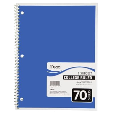 Mead Spiral Notebook, 1-Subject, 70-Count, College Ruled, Dark Blue (05512)